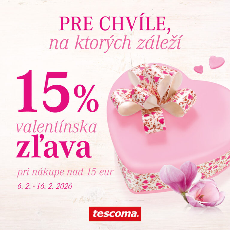 Oslávte Valentína s Tescomou. Nakúpte si všetko, čo potrebujete na prípravu jedinečného valentínskeho menu a využite našu valentínku so zľavou 15 % na VŠETKO* pri nákupe nad 15 €!